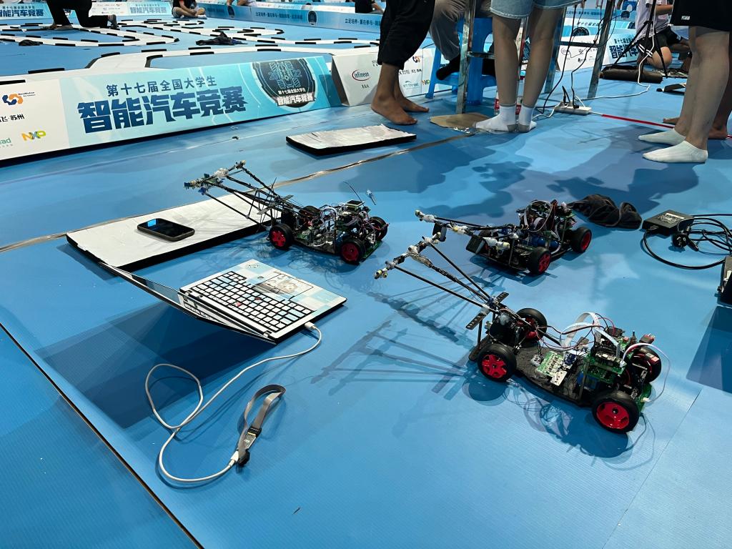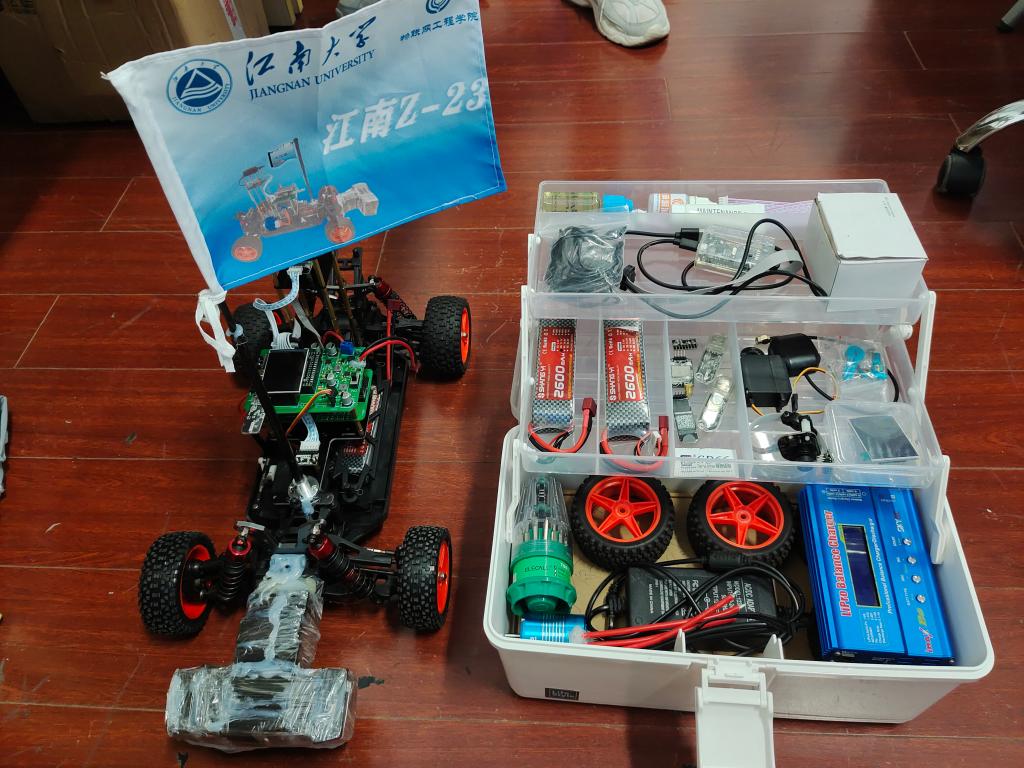 8月18日,参赛队员前往南京信息工程大学参加华东赛区的竞赛,经过激烈角逐,由谢富源、朱世怡、吕珂、李驿青、黄韧频组成的“全面小康”队和李世骏、朱文青、陆熠千组成的“江南Z-23”队在多车编队、极速越野的项目中表现优异,分别以赛区第4、第6的名次斩获一等奖,成功晋级全国总决赛。由张海涛、陈基浩、谭艳玲组成的队伍参加平衡单车赛项,小车在竞赛中出现意外,遗憾以赛区二等奖的成绩结束本届大赛。在随后的全国总决赛中,两支参赛队伍认真总结赛区比赛经验,不断完善车辆性能,在总决赛中位列全国第13名、第14名,均以1名之差与一等奖失之交臂,斩获2项全国二等奖。