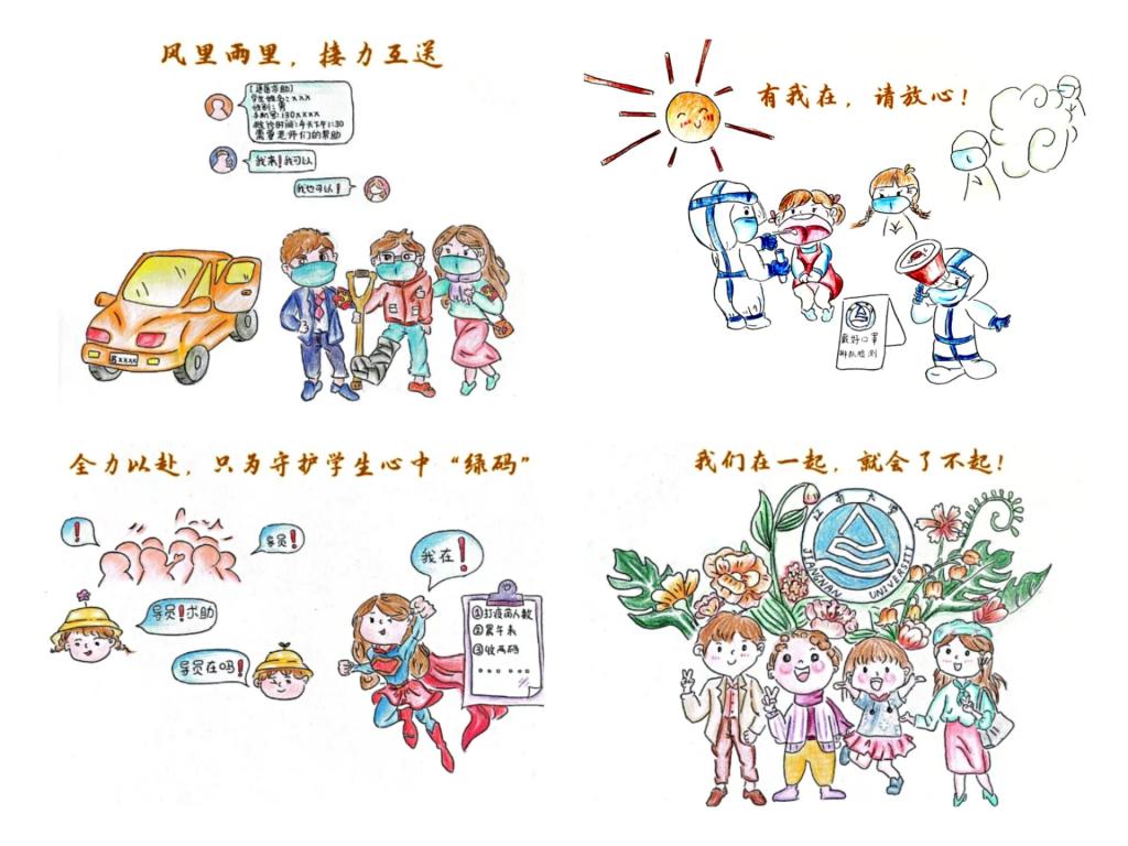 学院团委举办“‘声’动百年,‘音’为有你”作品征集大赛、“VAP”创意制作大赛、征文大赛、摄影大赛等,鼓励引导广大团员青年积极创作优秀文化作品,尤其是网络文化作品,活跃校园网络空间生态,提升网络素养,传递战疫正能量。各基层团支部积极组织,团员青年踊跃参加,优秀作品层出不穷。自动化2002班团支部制作的《我承诺》宣传视频,号召广大学子提高站位、严于律己、主动作为;自动化2102团支部团员杨润妍积极参加“‘疫’不可挡的青春”征文活动,作品《走好当下每一步,让每一步都掷地有声》分享自己在校园封闭管理期间的“宅”时光,传递抛弃负面情绪、把握每个瞬间、重拾生活轨迹的积极心态,该文被交汇点新闻客户端专栏收录;自动化1805团支部团员孔薇用9幅原创手绘漫画定格校园疫情防控中的动人瞬间,画中的主人公有党员教师志愿者、学生志愿者、辅导员、保安、配餐人员等,无不可爱又有暖心,她用手中画笔为江南战疫加油,画作及其背后的故事先后被江苏教育发布、新华报业网、紫牛新闻、江南晚报转载报道。