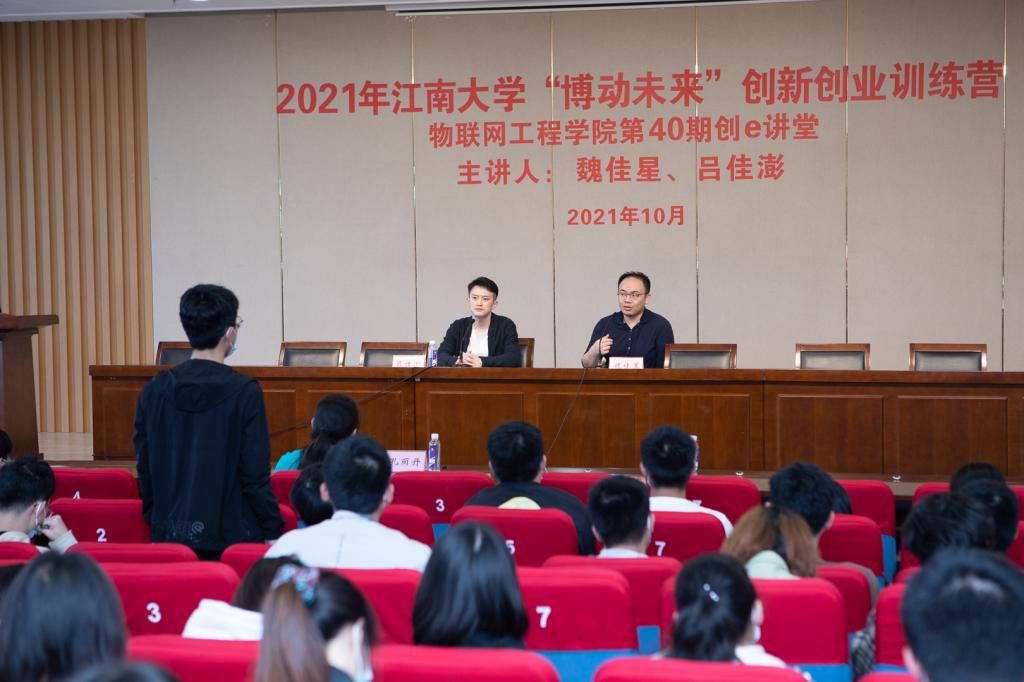 创业校友无锡源代码科技有限公司创始人吕佳澎、南京星蝠科技有限公司创始人魏佳星担任主讲。91直播