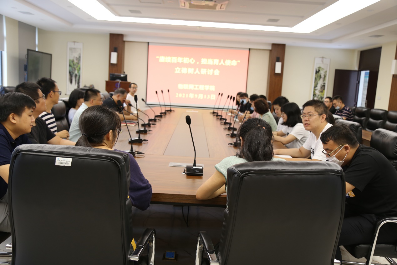 在B222会议室,举行了以“赓续百年初心,担当育人使命”为主题的立德树人研讨会。学院党委书记程捷音、院长谢林柏出席会议,各系主任及青年教师代表20余人参加了活动。会议由副院长陶洪峰主持。