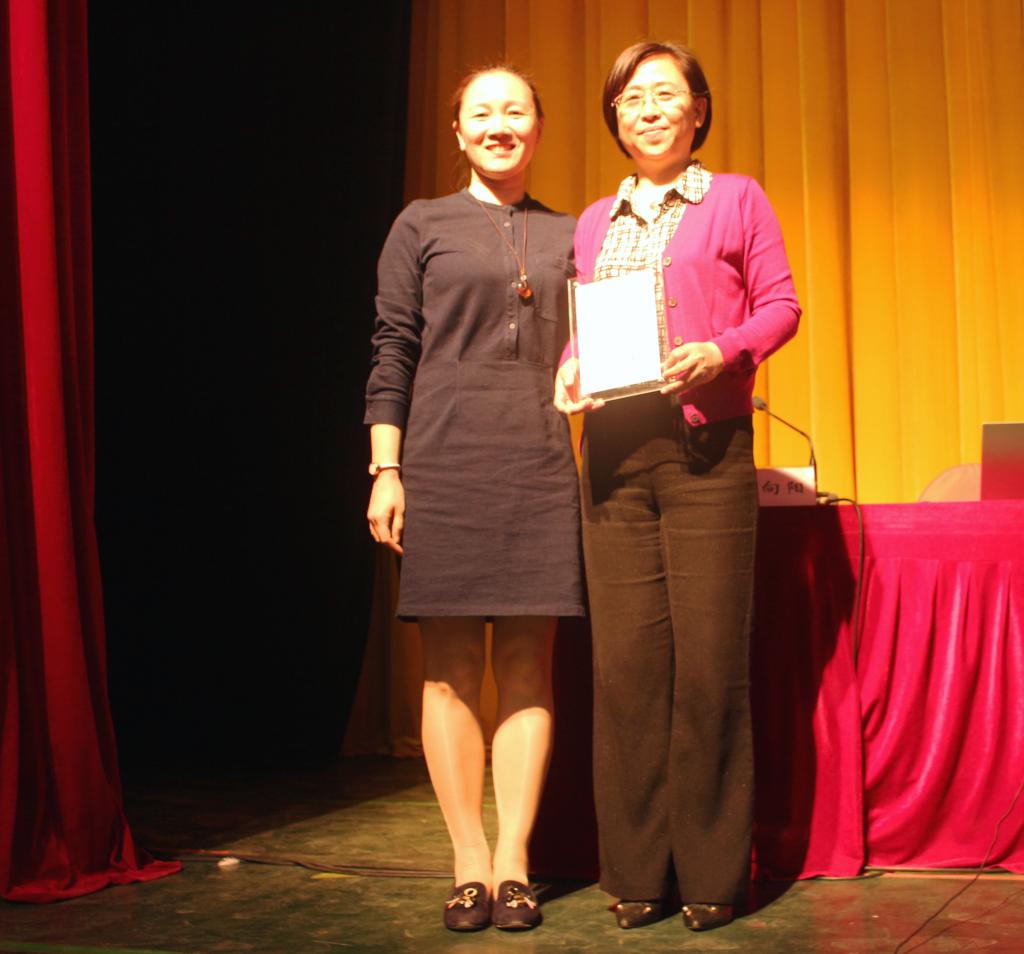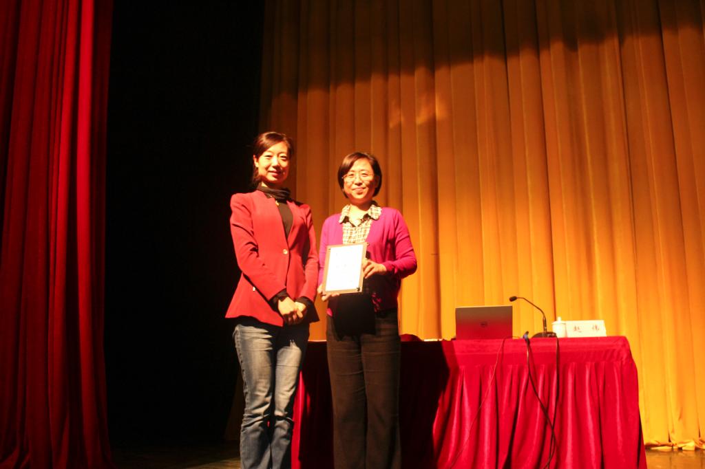 社会资源处副处长窦新华为嘉宾颁发“‘天下江南人’大讲堂讲演纪念”证书