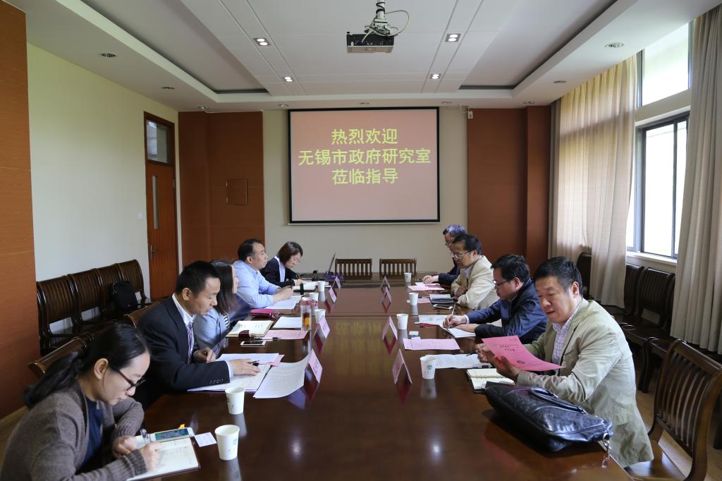 2018年4月19日上午,无锡市政府研究室副主任(主持工作)李伟刚、副主任王兵等一行四人来我校调研物联网学院发展建设现状、人才培养情况、毕业生就业去向基本情况等相关事宜。91直播 党委书记程捷音、院长谢林柏、党委副书记耿向阳、副院长熊伟丽等接待了来访客人并开展调研座谈。