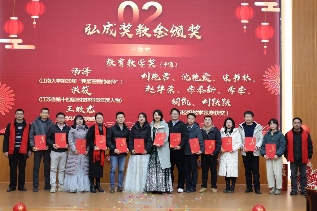 随后,进行“弘成奖教金”表彰颁奖。学院领导为2024年度“弘成奖教金”获得者颁发荣誉证书,表彰了在党建思政、教育教学、校园文体、管理服务等工作中涌现出来的先进集体和优秀个人。这是对获奖教师和集体的努力与成就的充分肯定,也是对全院教师爱岗敬业、为人师表、无私奉献精神的崇高赞誉,激励大家在新的一年继续追求卓越。