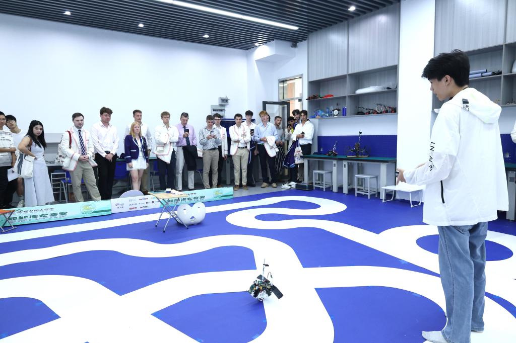 大学生创新实践基地,走进智能机器人俱乐部、电子设计俱乐部和RoboMaster俱乐部等创新社团。同学们现场演示了智能机器人、电力电子装置和智能无人机等创新成果,并结合竞赛和科研经历分享了实践故事。中英青年围绕技术进行了交流,在互动中共同探讨科技应用前景,现场气氛热烈。