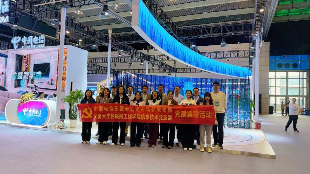 信息技术党支部组织党员走进世界物联网博览会,与无锡电信市场部党支部联合开展“党建翼联聚合力,数智赋能促发展”主题党日活动,在沉浸式体验中深化党建共建,共探产学研融合新路径。