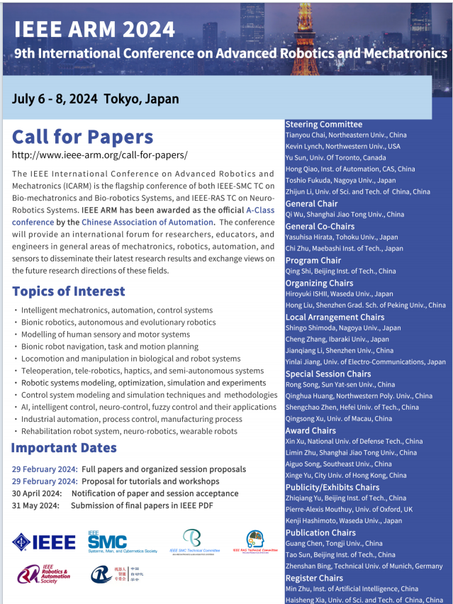 IEEE ARM 2024 The 9th International Conference on Advanced Robotics and Mechatronics