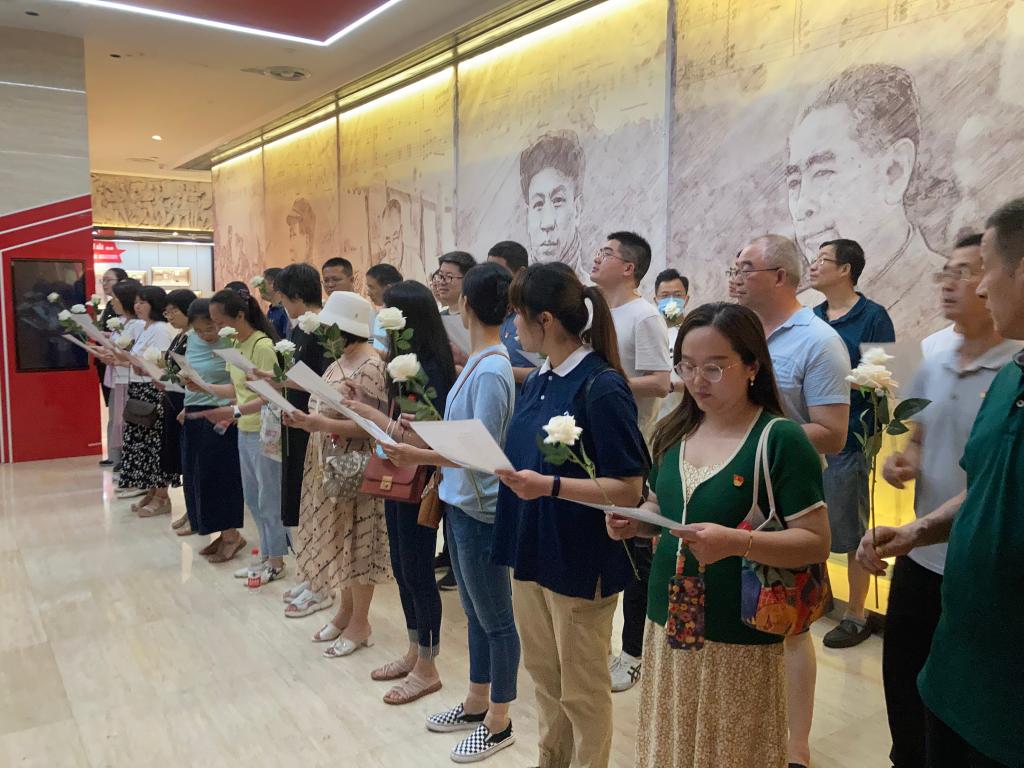 随后,大家来到展馆悼念墙前朗诵缅怀诗并献花,缅怀那些前仆后继、英勇无畏的革命先烈,敬畏他们在浴血奋战中践行初心使命的崇高精神。在场人员更加深刻体会到,正是一代代优秀中国共产党党员坚定共产主义信念和理想,才换来了今天和平、幸福、美好的新生活,因此要始终坚守实现中华民族伟大复兴的初心和使命,传承红色精神,弘扬爱国情怀,砥砺前行。