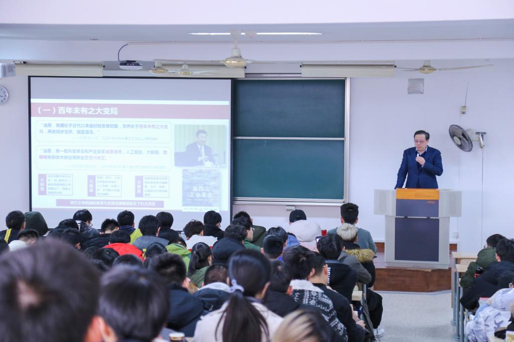 本次课程以“新时代高等教育的使命与担当”为主题,围绕“把握高等教育发展的时与势”“加快推进一流大学和一流学科建设”“建设‘世界知名、中国一流、江南风格’的研究型大学”三个方面,阐述了高等教育的发展历程及其重要地位。课程伊始,朱庆葆以“百年未有之大变局”切入,指出我国正处于近代以来最接近实现民族伟大复兴的时代,应当顺势把握机遇,不懈发展高等教育。他以中美贸易战为例,引导学生认识到中美贸易战的本质是科技战,而科技战的本质是人才战,人才战的本质就是教育战,各国之间的核心竞争是科技与教育的竞争。针对新时代对高等教育提出的要求,他强调,人才培养是高等教育的核心,每一个时代需要不同的人才、不同的技术,时代不同,对高等教育的要求不同,高校要了解时代,把握时代,贯彻落实立德树人根本任务。