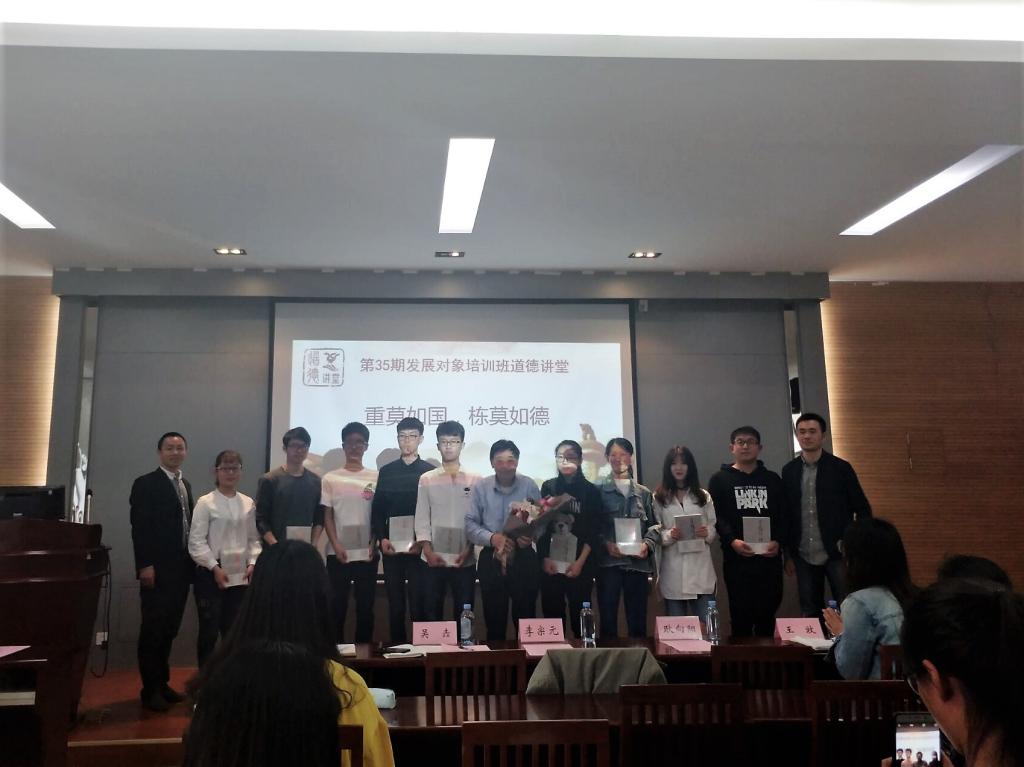 第35期学生发展对象培训班举办了以“重莫如国,栋莫如德”为主题的道德讲堂。出席本次活动的嘉宾有原无锡轻工大学党委副书记李宗元,91直播