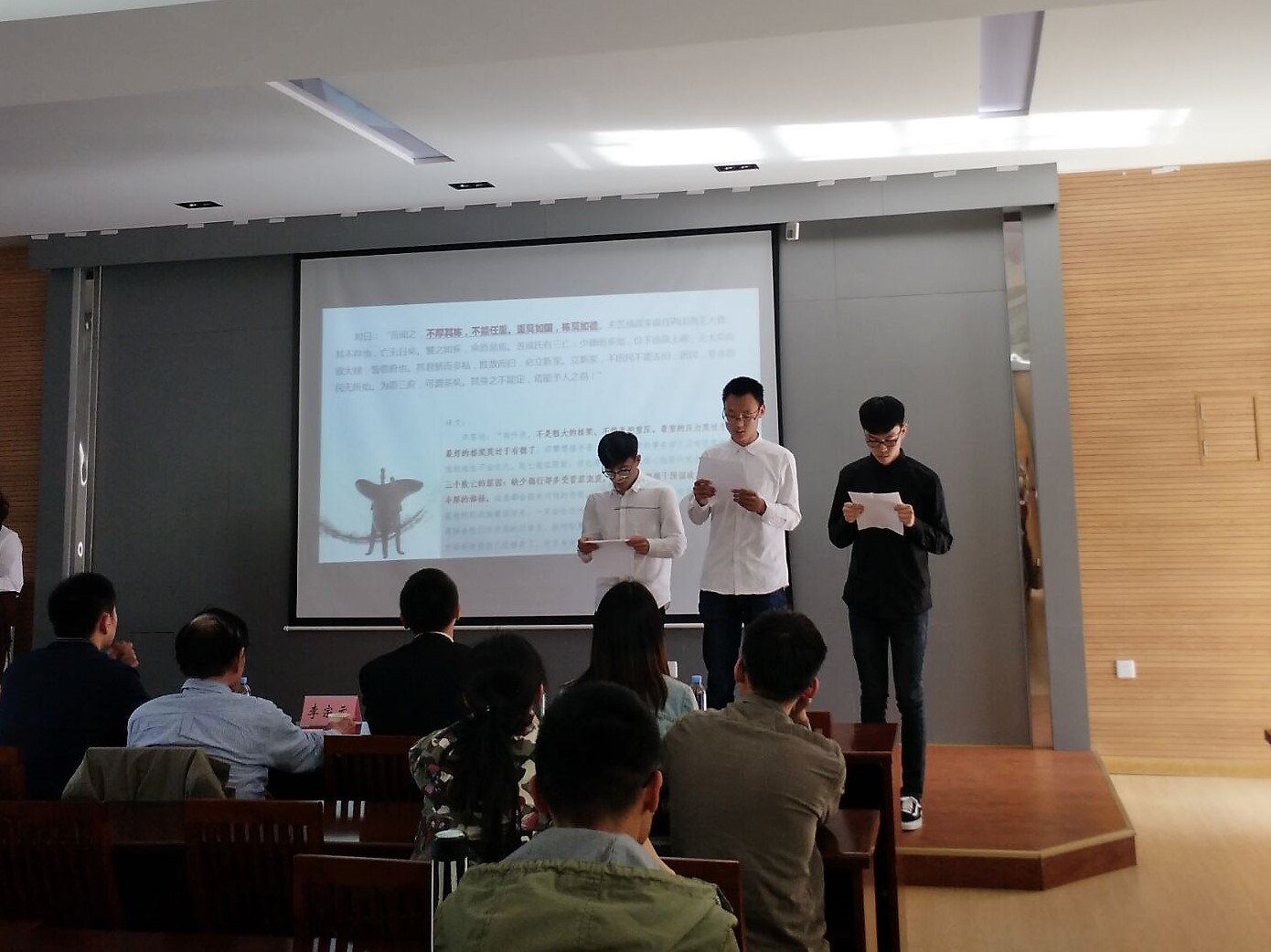 道德讲堂分为“诵经典”、“学模范”、“发善心”、“唱歌曲”、“劝善词”、“送吉祥”六个部分。首先由物联学子诵读《国语·鲁语》节选,雄壮浑厚的诵读声令人陶醉。 在“学模范”环节,主持人用短片介绍了卢永根——一个把国家扎根在心里的科学家。讲堂的第三项是“发善心”,数媒学院的同学为大家一一介绍了各位道德模范代表:91直播