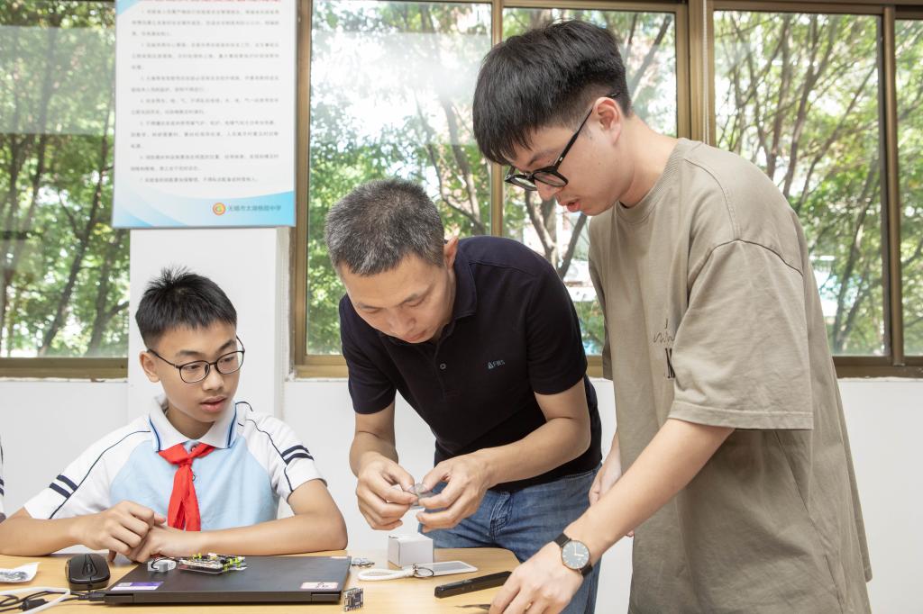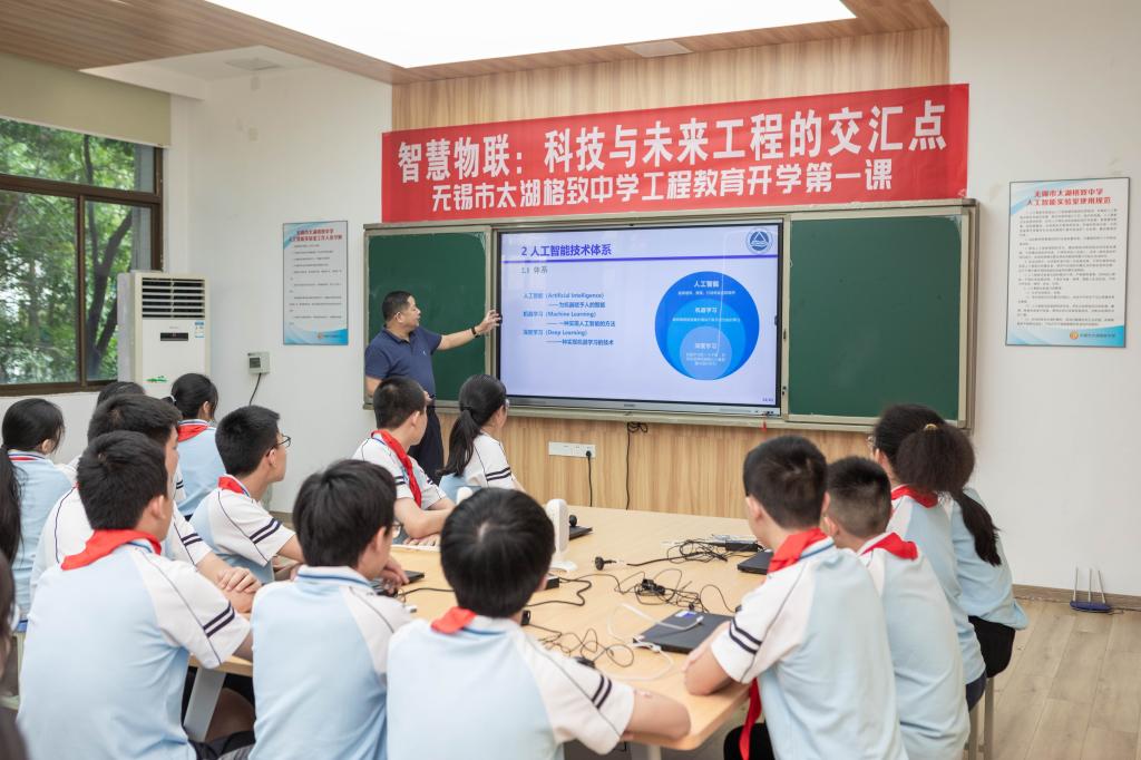 副院长郭亚教授、自动化系主任吴定会教授、实验室中心主任冯伟高级实验师、辅导员屈跃宽及物联网大学生创新实践基地党支部师生团队走进无锡太湖格致中学,为同学们开展了以“智慧物联,是科技与未来工程的交汇点”为主题的工程教育“开学第一课”。