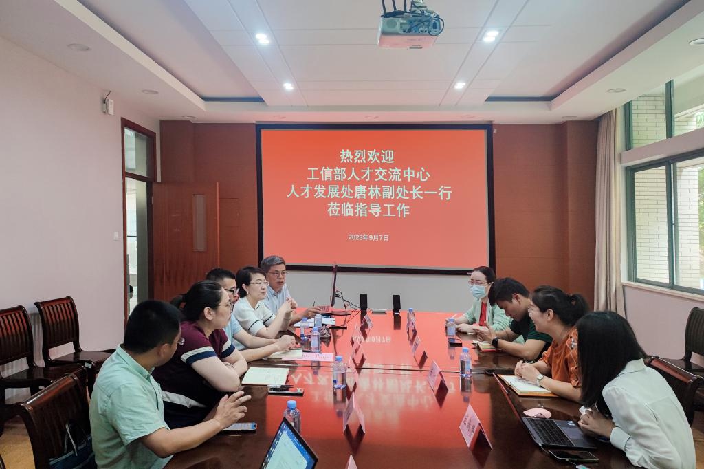 9月7日上午,工业和信息化部人才交流中心人才发展处副处长唐林、项目主管李君晟、王艳艳,无锡物联网创新促进中心集群服务部高级研究员张淑贤一行赴91直播 调研交流,座谈会在学院D206会议室举行。学院党委副书记、副院长孔丽丹,副院长陶洪峰、郭亚,信息技术系系主任吉训生,物联网工程专业责任教授秦宁宁,院长助理周彪等参会。