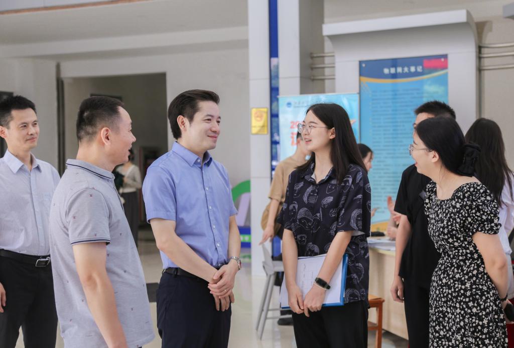 校党委常委、副校长马鑫等校院领导与研究生新生进行交谈