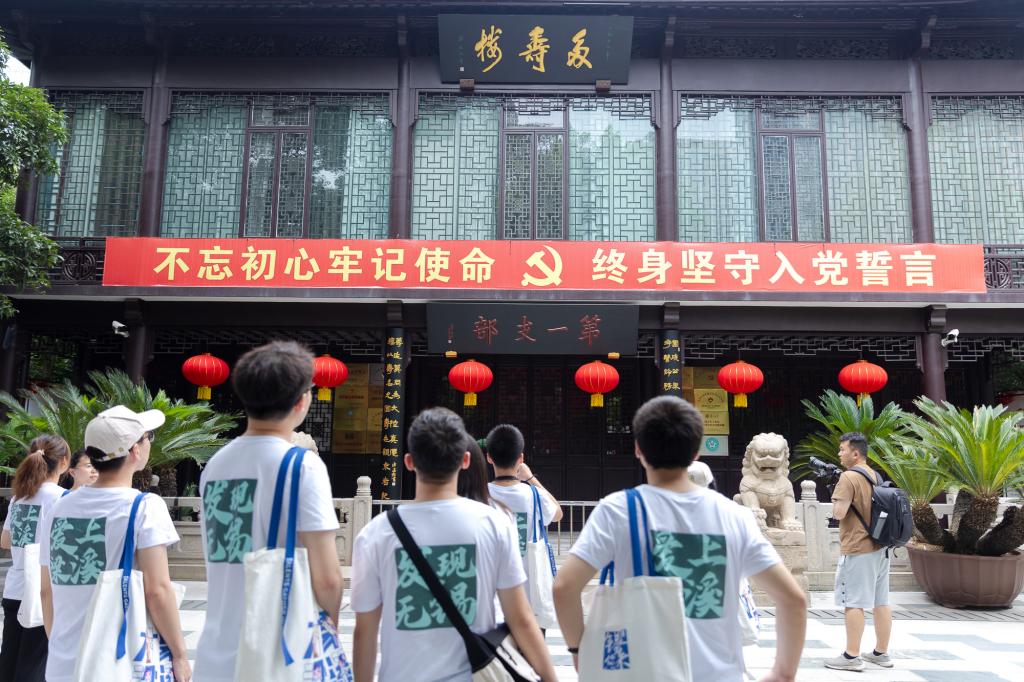 高举星星火炬,追寻红色足迹。中共无锡第一党支部诞生于公花园多寿楼西侧。调研团成员走进公花园,沿着“信仰之路”红色初心步道,在参观红色足迹里感悟红色精神,在誓言颂中坚定初心使命。“第一支部”仿佛一座灯塔,指引着广大青年不忘百年奋斗路,锐意进取向未来。 党章学堂、红色书场、信仰之路、西社以青少年中流行的“剧本杀”形式原创剧目《秘密会议》都在用更现代的方式,生动讲述着那段斗志昂扬的岁月。