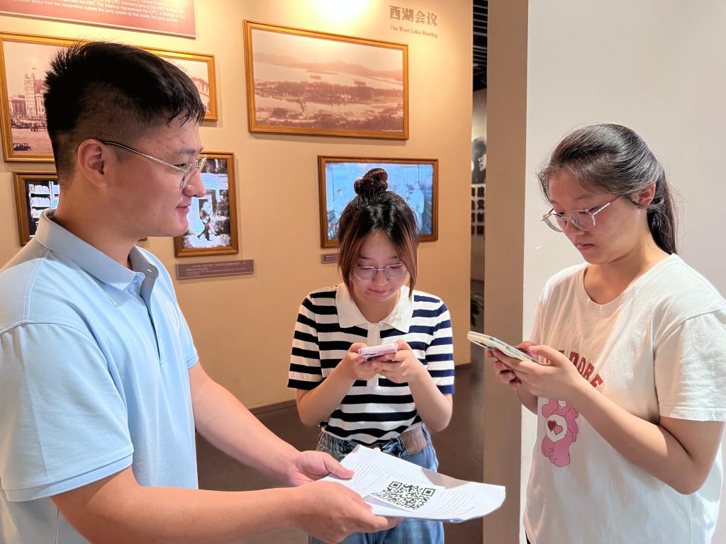 以纪念馆为主阵地,实践团成员分头行动,以“幼、青、中、耄”四代为“靶点”,以“线上线下”为渠道,分时段分区域进行问卷发放活动,通过不同群体的视角探索红色文化与现代传播方式的融合效果,为红色文化的传播探寻一条“新”路子。面对实践团成员填写问卷的邀请,参观游客或拿出手机扫码,或积极填写纸质报告。在调研过程中,受感染的不仅是实践团成员,也引发了参与群众对红色文化传承的思考,增强了红色文化的吸引力与感染力。