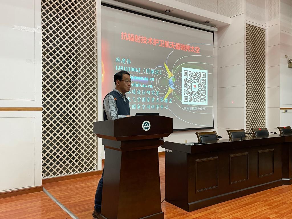 韩建伟教授以中科院国家空间科学中心的发展历程及其职责使命为切入点,从光辉坎坷的航天历程、历练问天者的“妖魔鬼怪”、护卫航天——你我大展神通这三个方面,通过列举国内外近十余年在轨航天器的故障案例,全面介绍了以单粒子锁定效应、深层充放电效应为首的空间环境辐射对在轨航天器的危害。他指出,空间辐射环境是航天器在轨运行的重要制约因素之一,如何开发和应用抗辐射技术,对保障航天器的安全可靠性和寿命非常重要。针对这些空间辐射,韩建伟教授重点介绍了我国航天器抗辐射技术的发展历程和取得的成就,并结合多个中科院国家空间科学中心深度参与的航天任务和自主研发的单机设备,展示了中国航天器抗辐射技术在实际应用中的优势和成果。