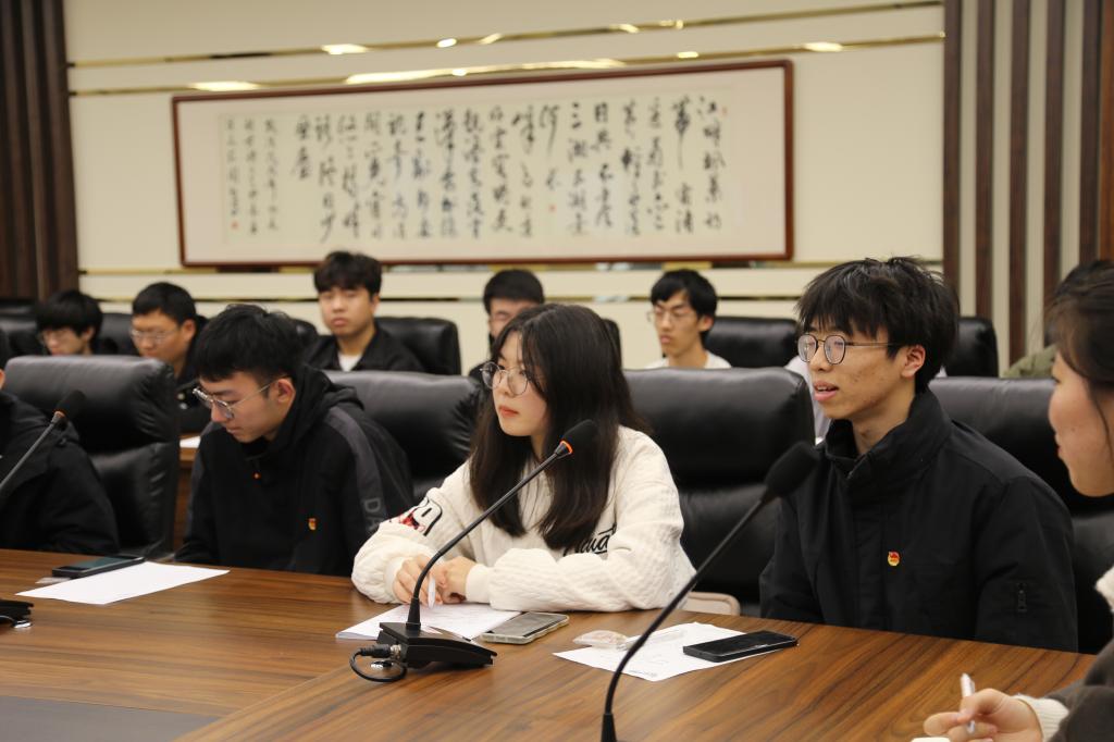 关工委老师吴锡生、赵曾贻、朱凯元,2021级辅导员沈滔,本科生第三党支部党员代表佴宇飞、张术、姚俊超出席活动,大一、大二各团支部书记现场观摩。活动由团支书李婉婷主持。