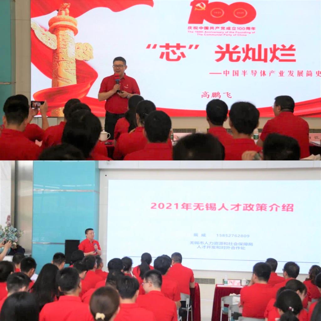 党委与华润微电子有限公司制造中心党委、无锡市人力资源市场党总支共同举办“政校企共建学党史 聚力共赢芯未来”献礼建党100周年学习教育活动。无锡市人力资源和社会保障局人才开发和对外合作处处长戴威、人力资源市场党总支副书记白江、副主任王振华,91直播