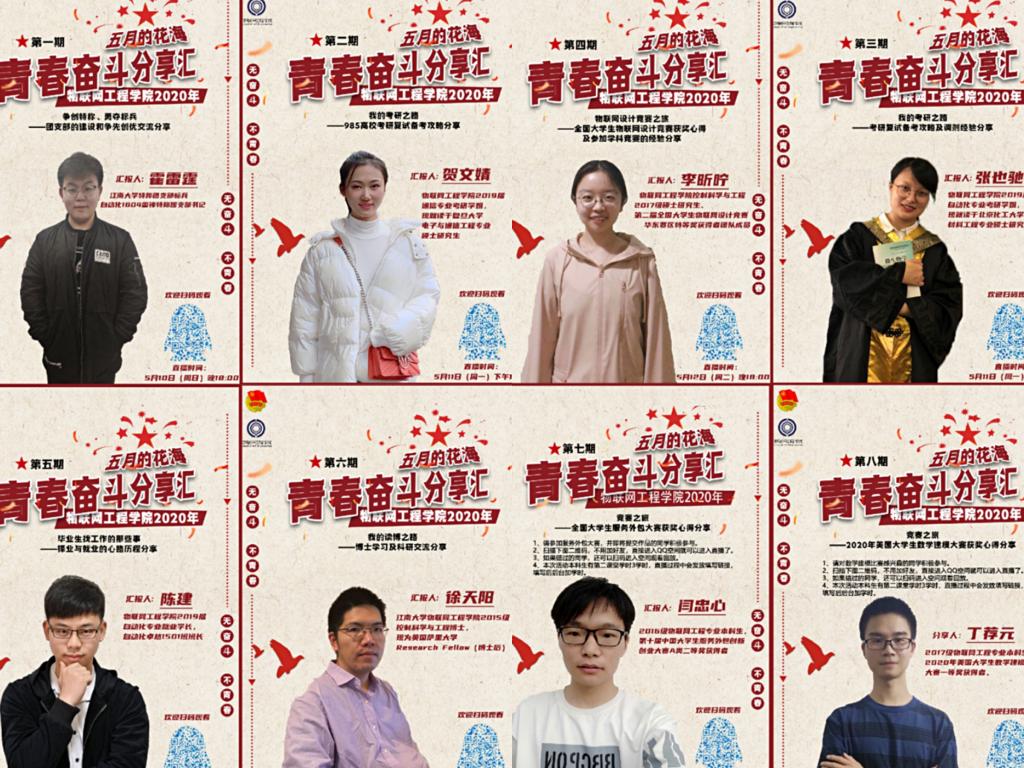 结合五月主题教育,举办首届“五月的花海”青年奋斗分享汇活动,活动通过网络直播的形式,自5月4日到5月31日持续一月时间,让优秀青年的奋斗故事,工作和学习经验,励志精神等通过网络直播传递给物联学子,为他们的未来发展指引方向。