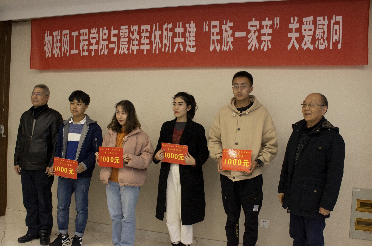 活动中,震泽军休所领导为张嘉文、巴特尔、艾迪耶·排祖拉、阿迪来·艾买提四位同学颁发了2019年度“民族一家亲 关爱育新人”爱心助学金,并向在场的24位少数民族同学发放慰问品。随后进行了座谈会,军休所的领导干部对同学们的学习生活进行详细了解并就同学们关心的时事热点进行解答,现场气氛热烈。活动在同学们依依不舍与军休所领导干部合影留念中结束。