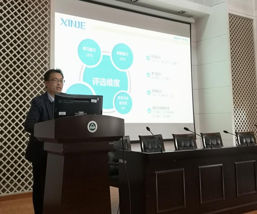 陈世恒代表信捷公司对“信捷奖学金”评选细则做了讲解,并对企业发展历程、核心产品、业务与经营情况等进行了宣讲介绍,鼓励学生积极申报“信捷奖学金”,并对大家到信捷公司实习和工作表示诚挚欢迎。他以风趣幽默的语言和干货满满的内容,激发了在场学生热情高涨。