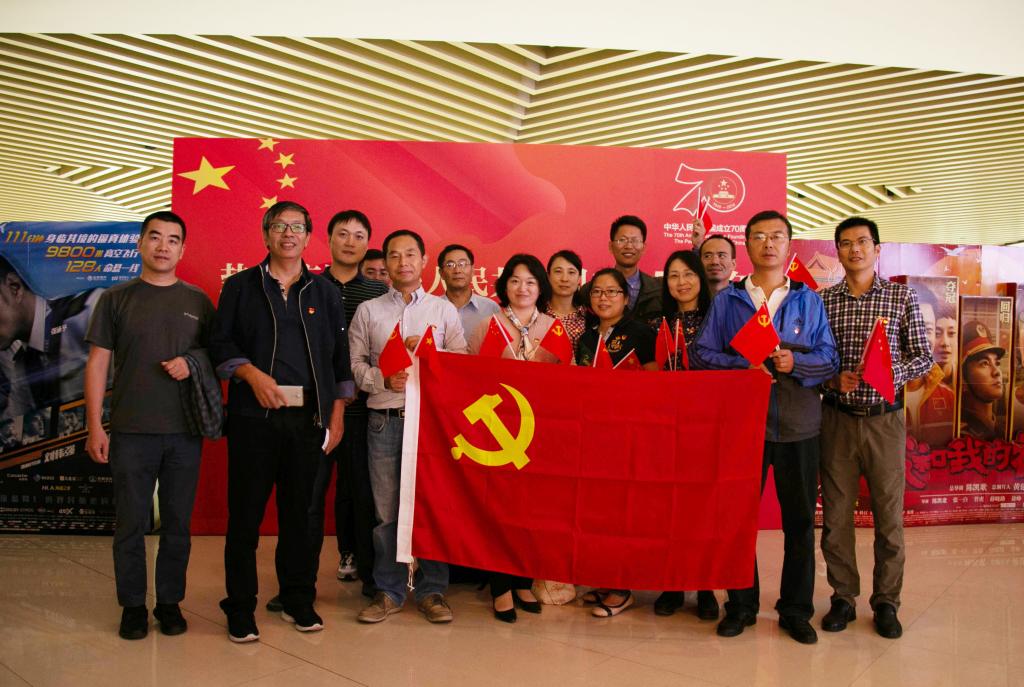 观影前,师生们热情高涨,带着满怀的期待,纷纷前往指定地点等待着这一盛宴的到来。现场氛围活跃,由王志顺老师组织同学为大家分发国旗与贴纸,徽章,随后,师生们纷纷以党支部、系部为单位与党旗、海报现场合影留念。