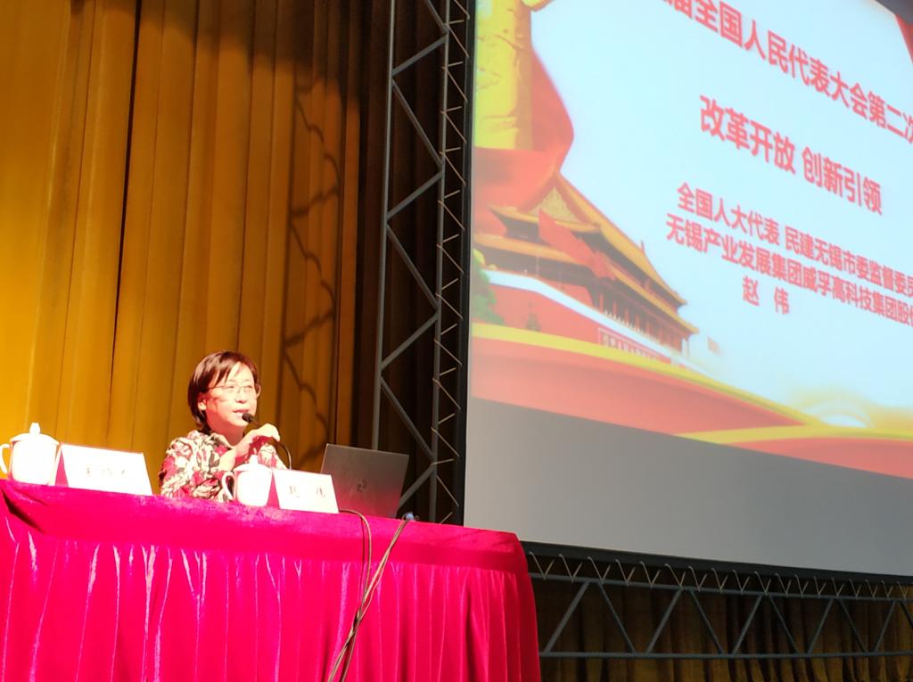 赵伟在报告中简要介绍了“两会”概况。她指出,今年的两会是在全面建成小康社会、实现第一个百年奋斗目标关键之年召开的一次重要会议,对于全面贯彻落实习近平新时代中国特色社会主义思想和党的十九大精神,鼓舞和动员全国各族人民更加紧密团结在以习近平同志为核心的党中央周围,同心同德、步调一致做好今年工作,为全面建成小康社会收官打下决定性基础,以优异成绩庆祝中华人民共和国成立70周年,具有十分重要的意义。她重点介绍了习近平总书记在今年两会各代表团的讲话精神,及其在加强生态文明建设、脱贫攻坚问题、三农问题、及营造良好发展环境及实现强军梦等方面重要的指导意义,并就今年的政府工作报告做了详细的讲解。同时,重点解读了今年两会出台的《外商投资法》,向大家介绍了外商投资法的出台背景和重要意义。最后,赵伟从她个人的履职情况,以及对两会精神的理解和感受做了分享。