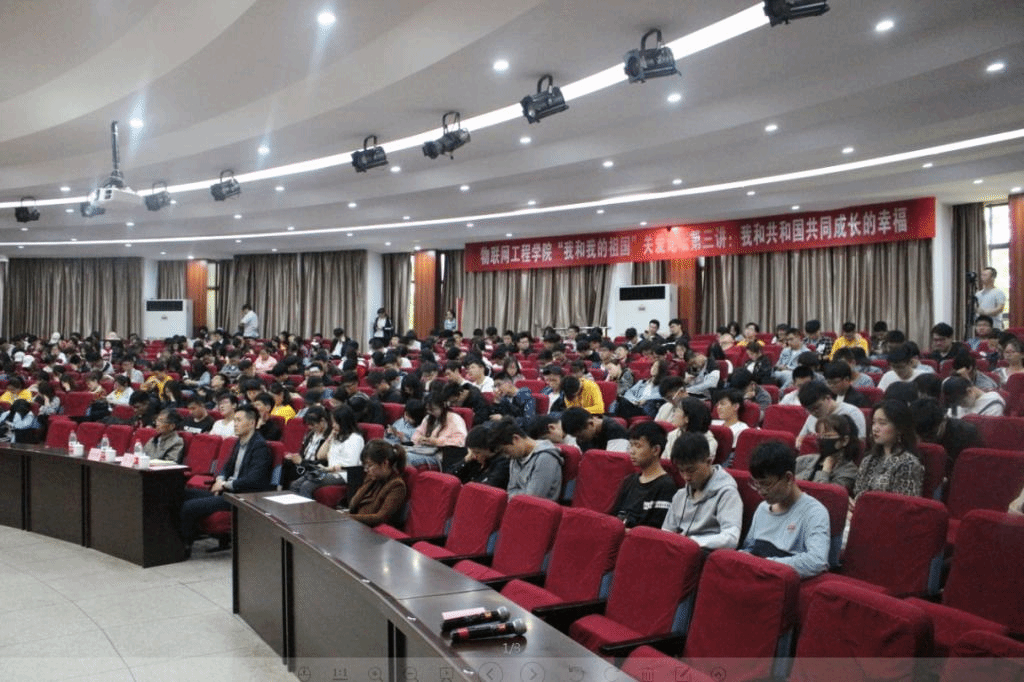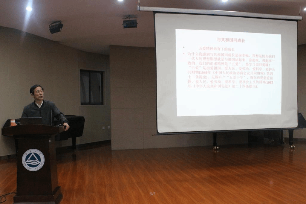 会议伊始,一首激情澎湃的学生诗朗诵《追梦新时代》,赢得全场的阵阵掌声。接着,赵曾贻老师开始做《我和共和国共同成长的幸福》主题报告。赵曾贻首先对自己的人生经历做了简单的介绍。他提到,作为共和国同龄人,这些年也曾参加过一些活动,如建国十周年在工人文化宫“我和祖国同年生”的活动,感悟颇多。接着,给大家分享与共和国同成长的经历。赵曾贻从歌曲《我们这一辈》讲起,讲述关于自己五四精神培养下的成长,并为大家科普新中国建设热潮和成就的相关知识。最后,赵曾贻对“个人和祖国发展的认识”做精彩阐述,从读懂新中国的必然到坚定“四个自信”,演讲中着重强调文化自信。并对宿命论可以休矣(人与世界)这一观点发表自己的见解。他说,人的生物学寿命是不长,但人生是可以做很多事情。人的精神、作品、思想道德是不会因为寿命而终止,会延续很长久。人的很多精神是会感染传承广大人民的,新中国的大庆铁人精神、大寨精神、雷锋精神、焦裕禄精神等,依然是中华民族伟大复兴的支撑精神。党的最高机关新华门的“为人民服务”大字和两边标语“伟大的中国共产党万岁”、“战无不胜的毛泽东思想万岁”等依然是我们民族最真实响亮的口号!活动最后,赵曾贻为同学们送上最诚挚、最温暖的祝福并寄予希望。