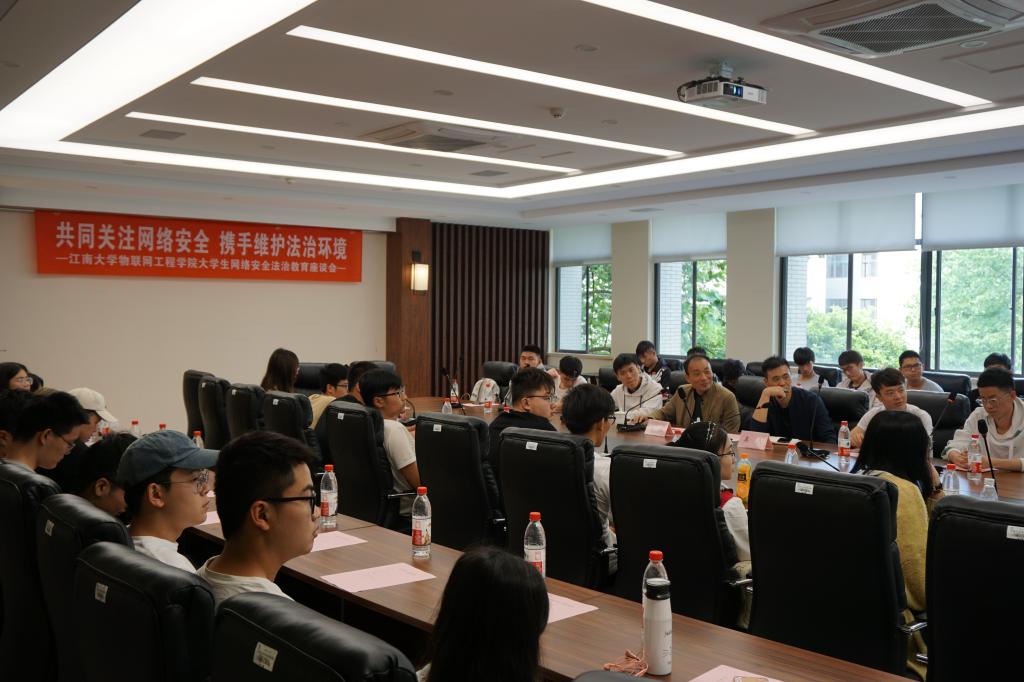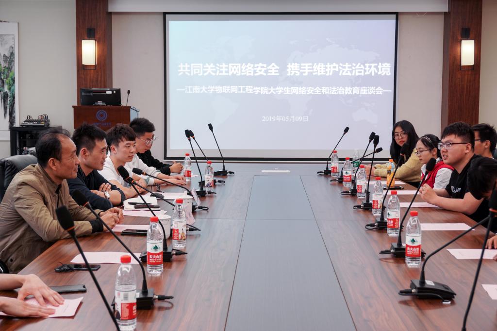 信息化建设与管理中心副主任蔡明作为特邀嘉宾,开展普及网络安全和网络法治教育等相关知识。2017级物联网工程专业的团员代表参加了本次活动。此次座谈会由91直播