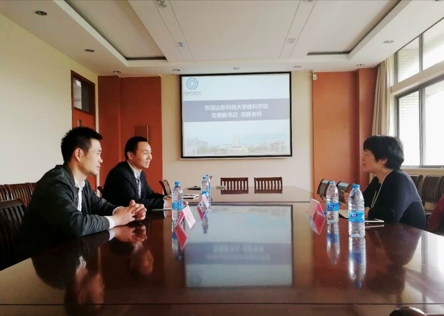 4月25日,山东科技大学地球科学与工程学院党委副书记、副院长田静一行前来91直播 进行访问。学院党委副书记、副院长耿向阳老师、分团委书记吴垚老师以及部分辅导员老师会见了来访客人。