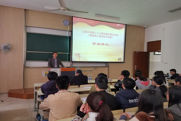 第33期发展对象培训班开班仪式暨第一次培训主题讲座在1B109顺利举行。此次讲座以积极弘扬培育社会主义核心价值观为主题,物联网学院党委书记朱飞,党委副书记、副院长耿向阳,分团委书记胡娟出席了开班仪式,物联网学院第33期发展对象培训班全体成员参加了活动。
