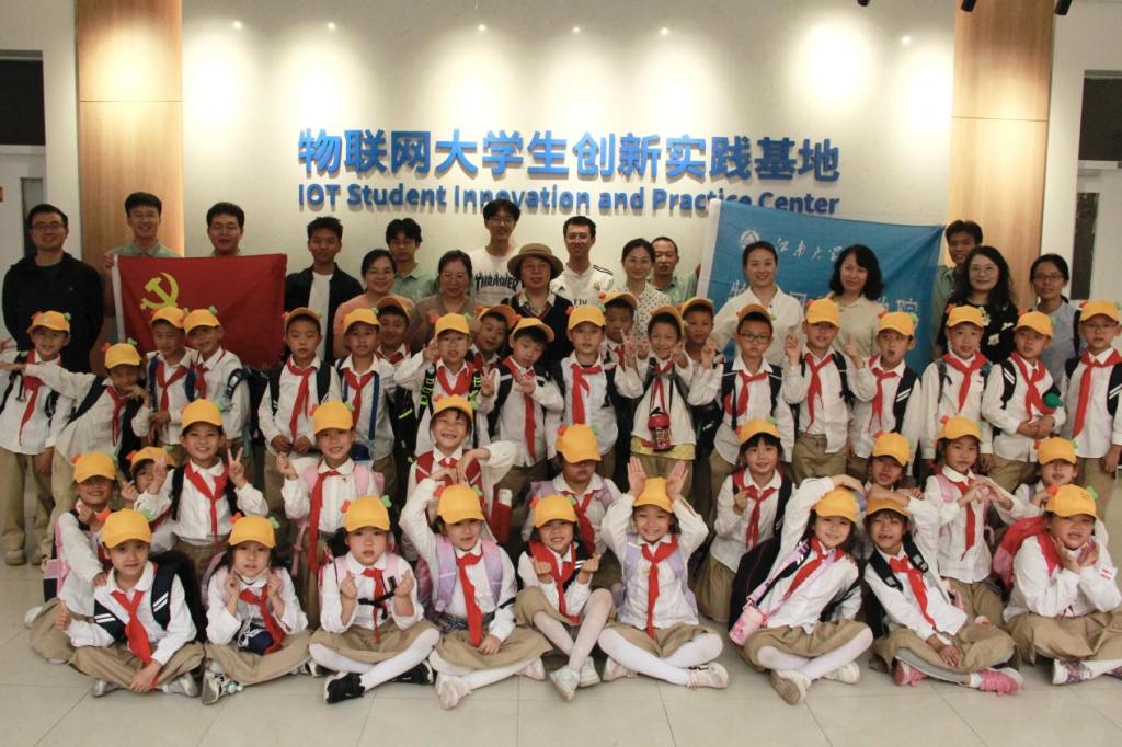 科技启迪智慧,创新成就未来。近日,来自无锡金桥双语实验学校二年级的45名学生走进物联网大学生创新实践基地,参观学习科创俱乐部科研环境和科创作品。同学们变身“小小未来科学家”,了解物联网应用前沿技术,领略智能制造业创新成果,亲身感受科技创新的神奇魅力。