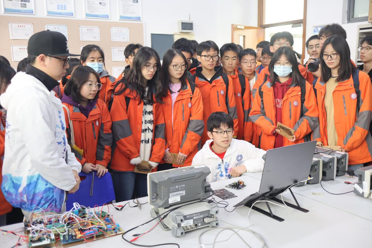 的秀美景色吸引了众多同学驻足停留,激起同学们对大学生活的憧憬和向往。在电子设计俱乐部,同学们依托讲解员的讲解和自身基础知识储备,认真了解面前数种功能电路的原理和组成,工程思维也在理论与实际的交汇中不断完善;在智能车俱乐部,同学们时而认真揣摩两轮车、独轮车等科创作品的工作原理,时而惊喜于作品实现的自主运行、自动避障等奇妙功能,他们不仅像海绵一样汲取知识,更能围绕其中的科学原理踊跃发言。科普研学基地为同学们提供了有趣的大疆智能车和飞行器的操作互动体验,物联网创新应用俱乐部的智慧河道项目更是帮助同学们树立了为人民谋福祉的科研初心。