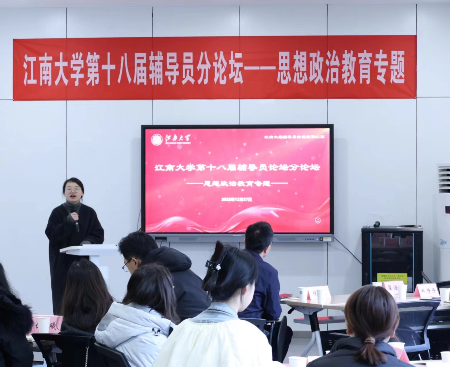 半导体传感器件与集成电路研究团队事迹中的思政元素为范例,就如何通过做好宣传“大文章”开展思想政治教育进行观点阐述;王胤从高校辅导员的身份界定出发,从七个方面的维度探讨思想政治教育实践活动的根本要求;郑丹丹以“致敬英雄——无锡抗美援朝老兵口述史”志愿服务项目作为主线,探讨在思想政治教育过程中发挥学生主观能动性的重要性。