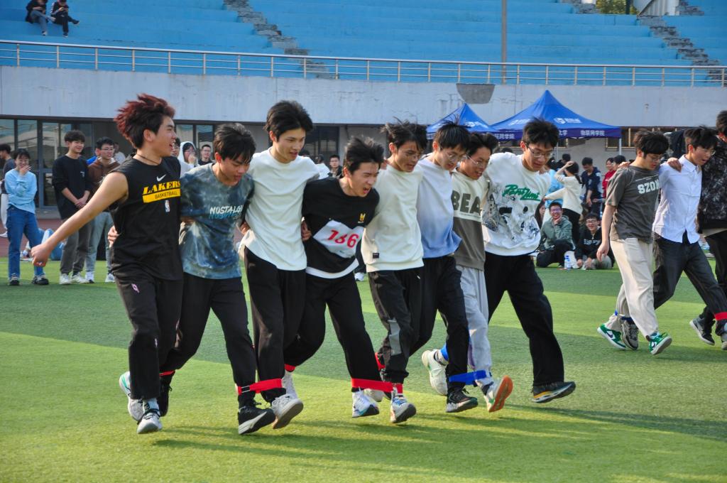 踏上赛道,是一种选择。冲出起点,是一种勇气。广阔的绿茵场,是为运动健儿们搭建的舞台。他们把长长的跑道跑成一段漫漫的征途,用一道道弧线描绘奋进的轨迹,展现超越自我的风采。在趣味运动会的赛场上,团结之花于此绽放。旋风跑、八人九足跑与花毽围踢让同学们在欢声笑语中体会到运动的乐趣,而新生拔河比赛则将运动会带到了高潮,一条绳,一条心,不论结果如何,那奋力的呐喊已然将物联学子团结在一起。