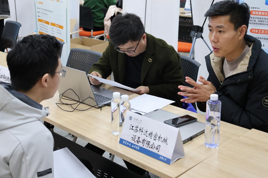 科学技术研究院副院长樊启高等深入招聘会现场,与用人单位代表亲切交谈,了解企业用人需求,介绍学院人才培养和校企合作情况,探讨未来合作的可能性和方向,并与求职学生亲切交流。毕业班辅导员、班主任和部分专业教师在现场与用人单位主动对接,多渠道全方位地向用人单位推介输送我院毕业生人才。