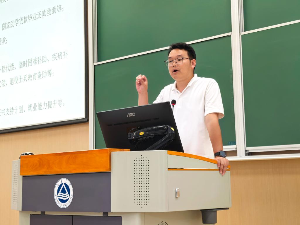 奖助政策解读板块,学院资助辅导员沈滔围绕“奖、助、贷、勤、补、免”为新生详细介绍了各级各类资助政策,解释了评定细则及评定流程等。他强调,学院一直致力于为学生创造良好的学习环境,不会让任何一位学生因经济困难而影响学业。他鼓励同学们要以积极向上的态度面对生活中的挑战,自强自立,不断提升自我,最终成为能够反哺社会、报效国家的有用之才。