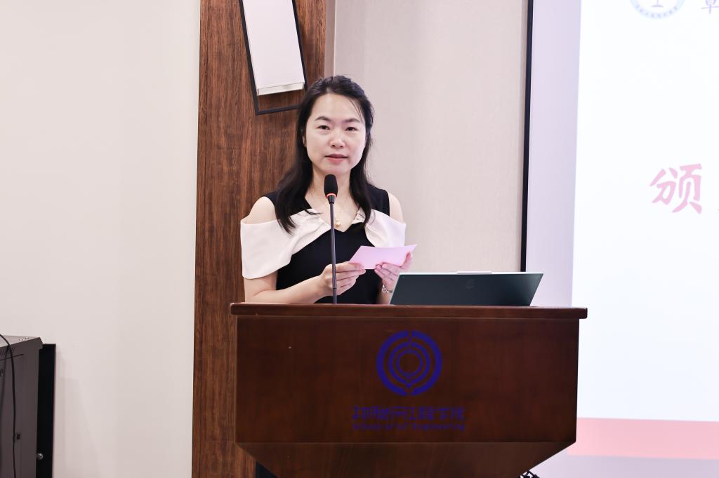 院学生会团学事务部干事李明洲介绍第十五届“英飞凌”卓越工程师训练营开展情况。本届训练营深度践行校企协同育人理念,以“学思践悟”为核心,创新打造多维赋能体系,通过团辅破冰、梦想起航、专业领航、职业导航四个模块丰富多彩的活动,助力营员们将个人理想融入时代发展洪流,在专业领域深耕细作,以实际行动践行青春誓言。