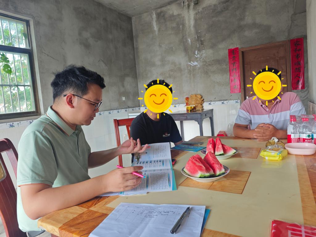 架起“传声筒”,让政策暖意直抵人心。出发前,资助辅导员沈滔带领“资助政策乡村”社会实践团队系统整合国家、学校及各学院特色资助政策,针对不同年级、专业学生的差异化需求,团队精心定制“政策礼包”:为大一新生侧重解读入学适应期的奖助贷政策,为大三学生重点介绍科创、实习与就业帮扶措施。家访过程中,辅导员结合学生实际情况,向家长反馈其在校期间的学业进展、生活状态及心理状况,与家长共商促进学生发展的教育方法、措施和手段。在阜宁县古河镇等地的走访中,团队通过“政策问答+榜样案例”的形式,让抽象的政策变得可知可感,让资助温情在乡村院落里流淌。