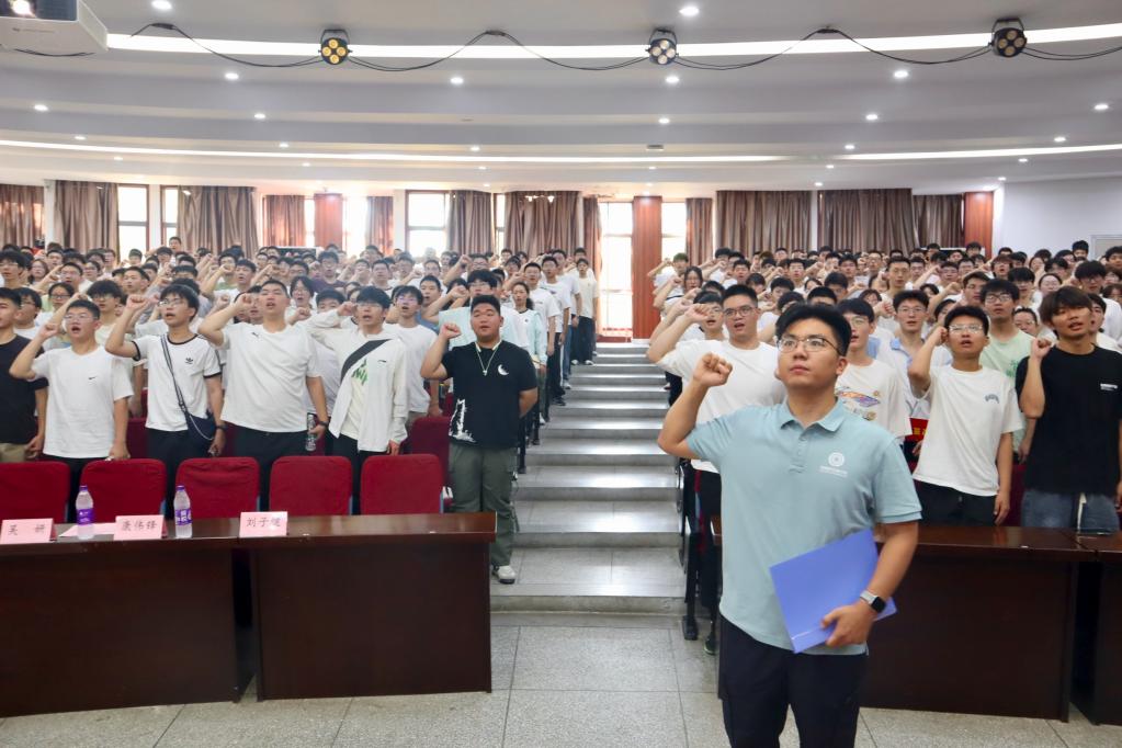 2025级新生齐聚在北区大学生活动中心音乐厅,庄严举行军训动员大会,拉开军训的帷幕。学院党委副书记、副院长吴妍,2025级本科生辅导员刘子健、周显宜,2025级全体参训学生出席活动。大会由刘子健主持。