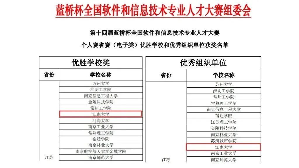 近日,第十四届“蓝桥杯”全国软件和信息技术专业人才大赛江苏省赛电子类赛道落下帷幕。江南学子共获电子类奖项69项,其中一等奖16项、二等奖27项、三等奖26项,16人取得国赛参赛资格,91直播