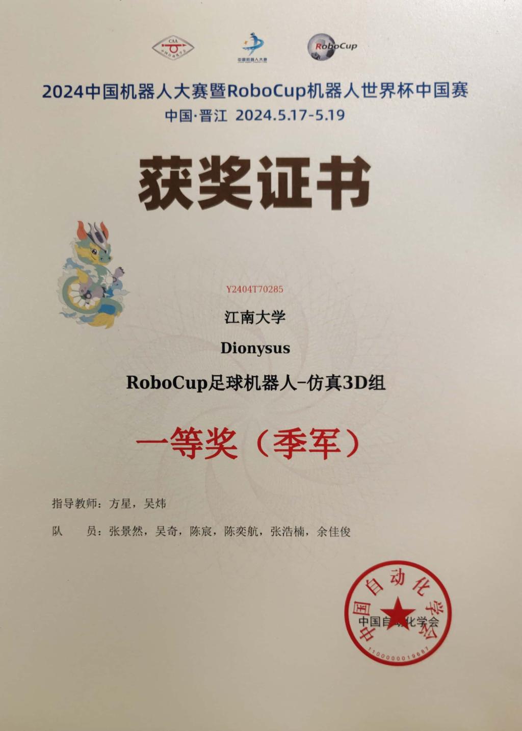 机器人俱乐部仿真3D足球队经过连续3天多轮激烈角逐,最终斩获全国一等奖(全国季军),打破了我校在该项赛事的历史最好成绩。