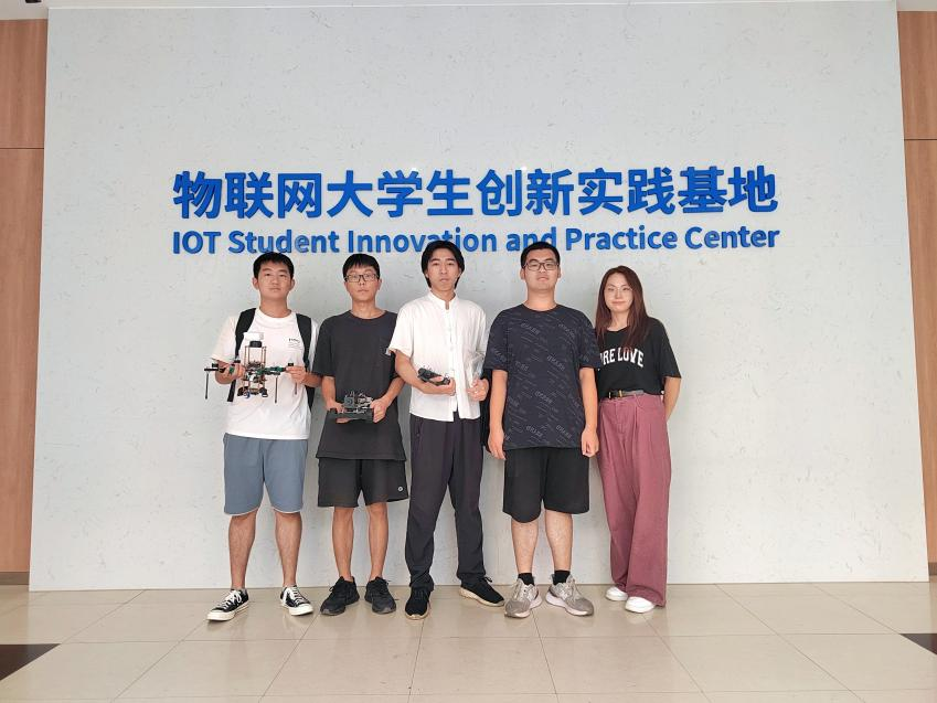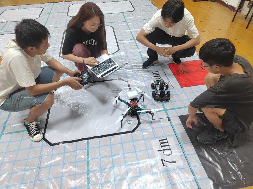 “起鸢02”由王寅骞、冯喆两名本科生挑大梁,在王蛟龙和张相胜老师的指导下,团队积极总结之前的参赛经验,不断调整比赛状态和思路,确定采用基于无人机动力学模型参数精确辨识,建立针对位置和姿态的耦合动力学模型控制策略,并考虑旋翼无人机的电池衰减和侧风干扰,建立必要的干扰前馈补偿控制机制,优化无人机位置姿态控制的响应性能、精确度以及抗干扰性能。经历两个多月的紧张备赛和48小时的激烈角逐,最终凭借精巧的算法设计和高效的飞行控制路径,成功穿越所有障碍环,最终在规划控制专项赛中以第二名的好成绩斩获全国一等奖,并受邀前往上海参加青年工程师大会并作技术分享。