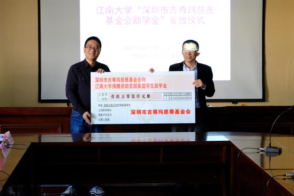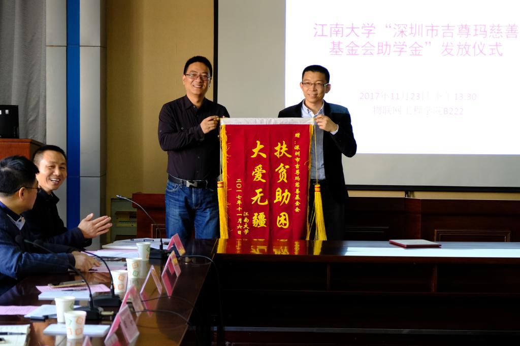 “深圳市吉尊玛慈善基金会助学金”发放仪式在物联工程学院B222会议室举行。嘉宾和受资助的学生围坐在会议室,会场气氛和睦温馨。91直播