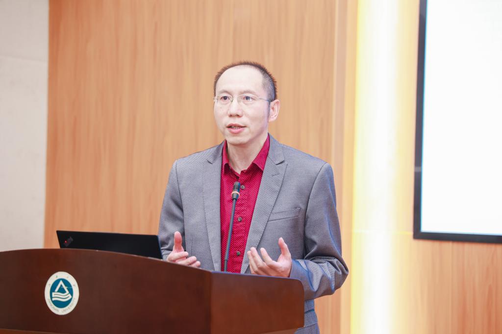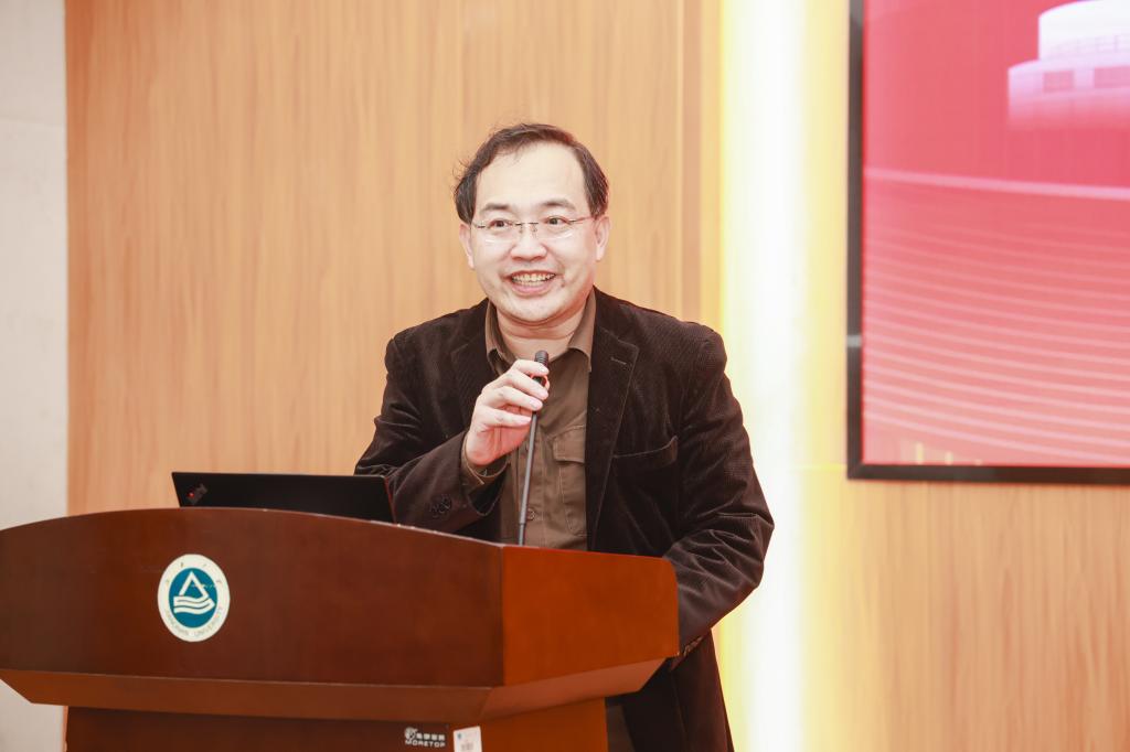 王伟民作分享报告。他衷心感谢母校、感谢老师和同学在自己学习成长和企业发展过程中给予的关心和帮助。他表示将通过校友会,加强校企间合作交流,努力服务社会、回馈母校。